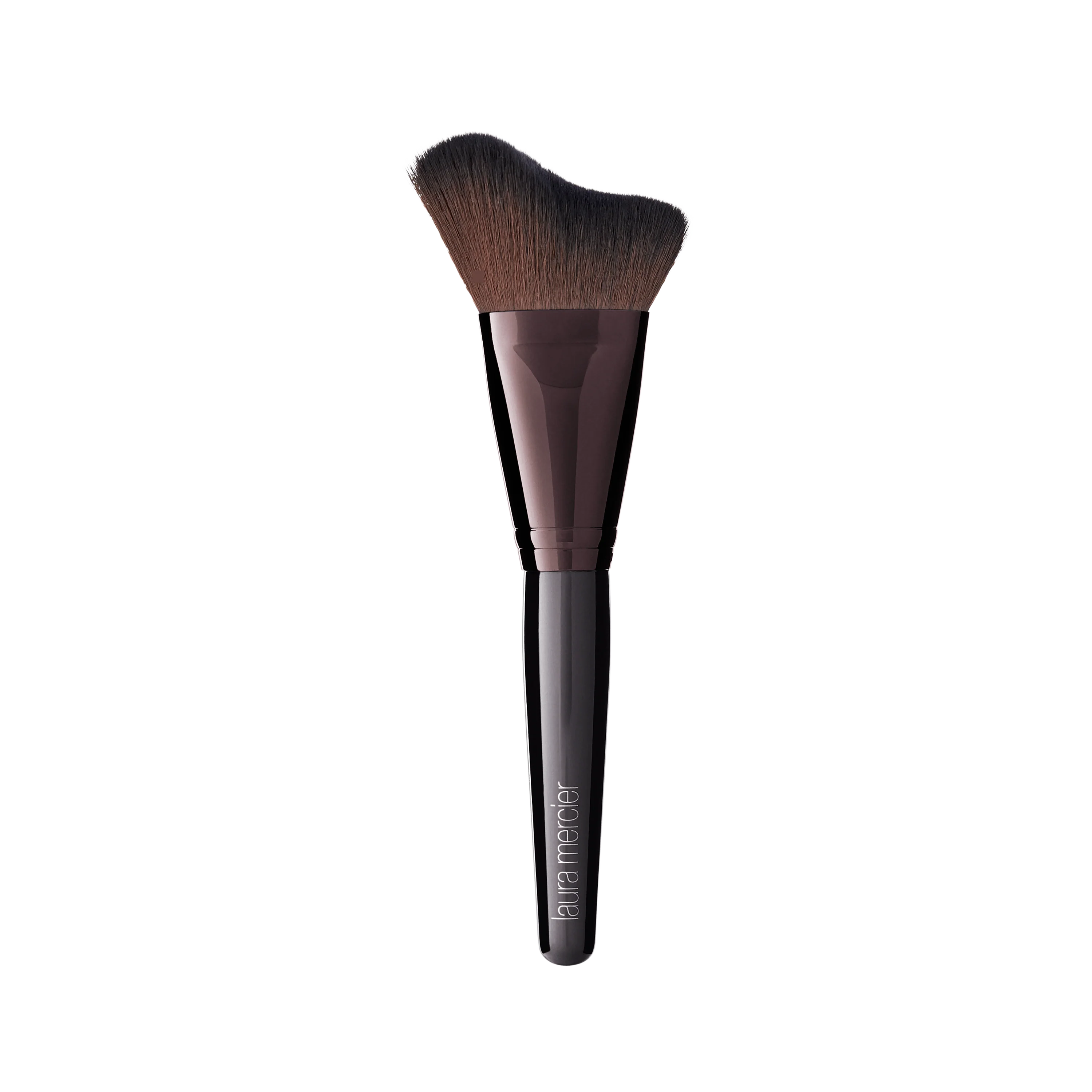 A synthetic brush. The unique curved shape is designed to fit the contours of the face, so powder is applied evenly and smoothly all over, leaving behind a consistent and uniform veil of luminosity.